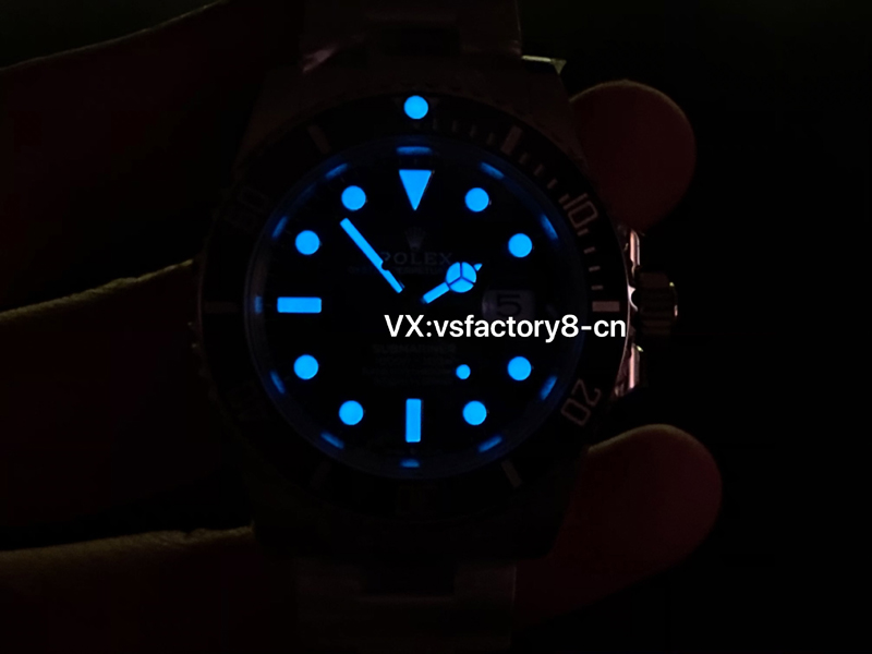 4:VS廠勞力士黑水鬼的表盤還原是不會(huì)一眼假和破綻的,畢竟是黑色低面,相似度是99%,沒有顏色差異,表盤上方的勞力士標(biāo)志則是其奢華身份的象征。指針設(shè)計(jì)靈感來(lái)源于當(dāng)年經(jīng)典潛水表,夜光涂層保證了在低光條件下依然能夠清晰讀取時(shí)間。