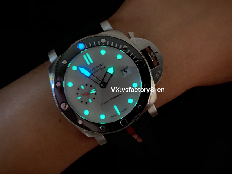 3:VS廠沛納海PAM1681的表盤(pán)是其外觀的亮點(diǎn)之一,也是最矚目的重要之一,以銀色太陽(yáng)放射紋表盤(pán)還原最高,指針的設(shè)計(jì)與原版保持高度一致,采用夜光涂層,表盤(pán)飾有“Luna Rossa”字樣,表圈的夜光圓點(diǎn)、指針與時(shí)標(biāo)均涂覆Super-LumiNova?夜光涂層,最具有特點(diǎn)就是九點(diǎn)位置小秒針盤(pán),還原了正版一致環(huán)形雕紋,該細(xì)致紋路是利用特殊工具在表盤(pán)鑿刻數(shù)圈同心圓,創(chuàng)造出猶如波浪起伏的視覺(jué)效果,很難想象VS廠的還原技術(shù)非常超強(qiáng),也讓人令人欣賞,非常讓人值得入手的考慮!