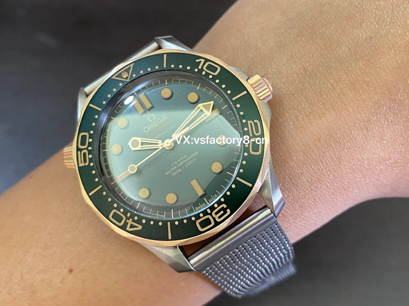 1:VS廠歐米茄復(fù)古綠金無暇海馬300米是對(duì)經(jīng)典海馬系列的還原致敬,表殼采納了與原裝一致鈦金屬還原設(shè)計(jì),具有良好的防銹性能和堅(jiān)固性,通過拋光與拉絲工藝相結(jié)合,使得表殼既顯得光澤奪目又不失優(yōu)雅,表殼的細(xì)節(jié)做工還原非常完善,完全達(dá)到了原裝同步還原表殼材質(zhì)。