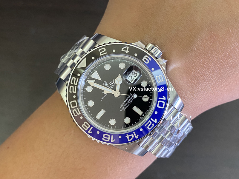 3:表圈的還原材質(zhì),像以前的勞力士國米圈幾乎都是拼接圈,特別容易發(fā)現(xiàn)破綻和一眼假,而對于這一項技術,VS表廠已經(jīng)是完美的攻破,獨家研發(fā)燒制的黑藍雙色一體圈,做到了完全對版細節(jié)工藝,而且在藍色部分做到了幾乎一致顏色,無法看出破綻和一眼假,實施了雙向功能表圈設計,表圈上的白色刻度做工非常均勻,一眼看得出VS廠勞力士國米圈復刻腕表是完美稱得起“天花板”稱號。