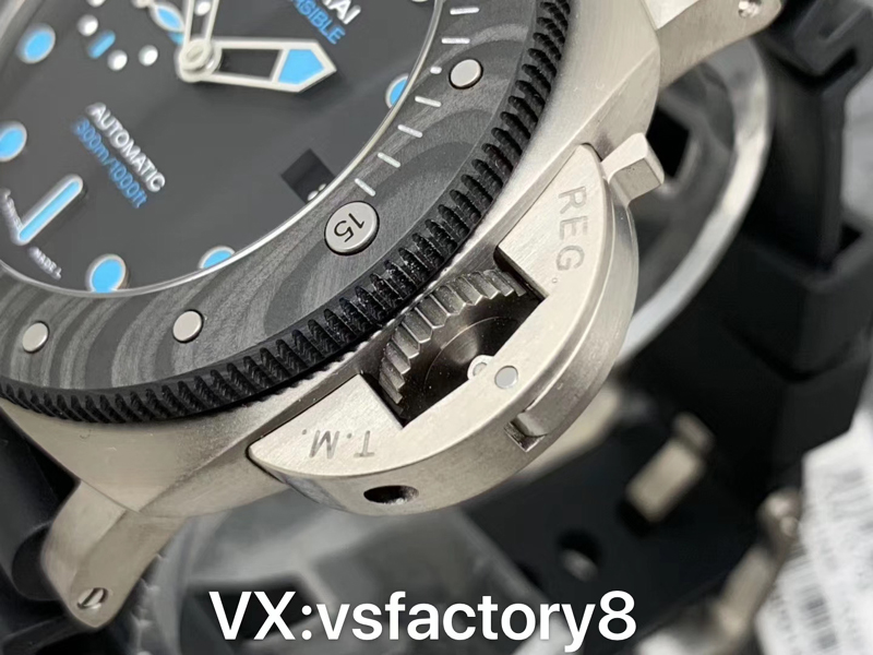 3:VS廠沛納海pam799在表鏡材質(zhì)上采用了藍寶石玻璃,具備極高的抗刮擦性能,內(nèi)鏡進行了鍍膜和防眩暈工藝處理,其透亮的玻璃使得表盤的細節(jié)一覽無余,給人帶來了視覺上的享受,同時,VS廠在表殼右側(cè)復刻原版一致“護橋”還原,材質(zhì)上一致鈦合金屬材質(zhì),護橋上的刻字細節(jié)非常立體,表冠護橋裝置是正品沛納海的一大標志性特色,VS工廠一覽無余的復刻到位。