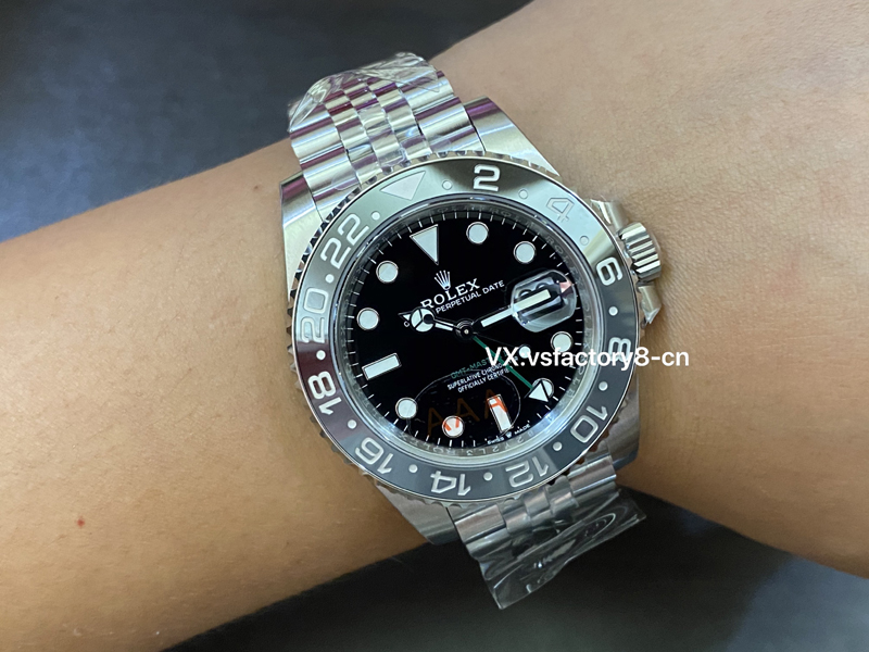 2:VS廠勞力士格林尼治皮蛋圈復(fù)刻表在外觀上就給人以深刻的印象,細(xì)節(jié)打磨非常到位,表殼采取了904L精鋼材質(zhì)鍛造,耐腐蝕、耐磨損,經(jīng)過(guò)高級(jí)拋光和拉絲處理,既展現(xiàn)了手表的光澤感,又保留了耐用的特性,值得一提的是,VS廠在手表的每個(gè)拐角、每條線條的雕刻上都下了大工夫,力求不僅回歸原版的輪廓,更在細(xì)節(jié)上做到極致追求,展現(xiàn)出了市面上最高版本的復(fù)刻表。