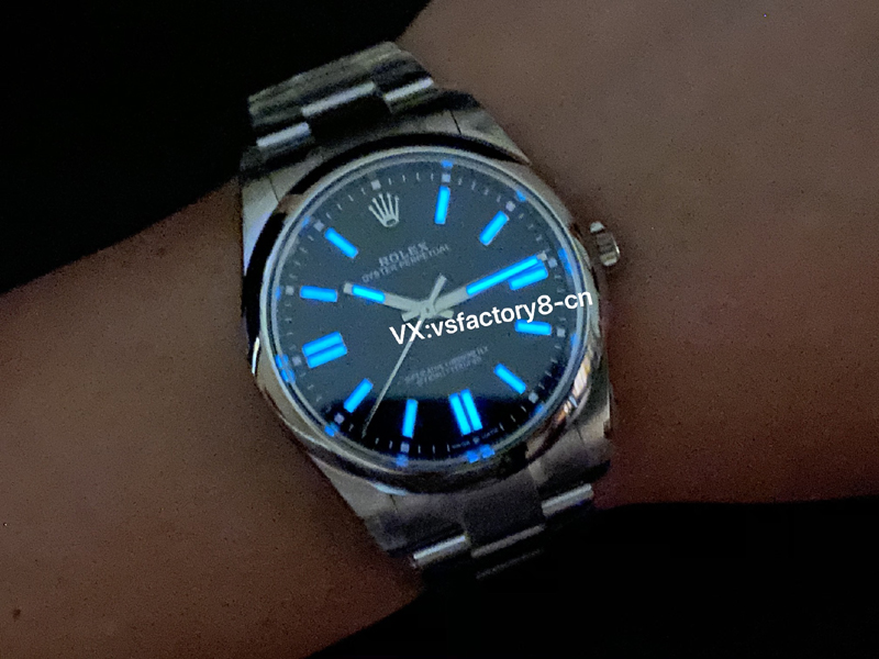 4:表盤(pán)的復(fù)刻還原設(shè)計(jì)非常完美,VS廠勞力士蠔式恒動(dòng)復(fù)刻表的同步了原版一致黑色表盤(pán)設(shè)計(jì),其無(wú)色差現(xiàn)象,指針和時(shí)標(biāo)采用了與真品相同的鍍銠,瑞士夜光材料也與真品一致,使得在暗光環(huán)境中依然能夠清晰讀取時(shí)間,指針的設(shè)計(jì)經(jīng)過(guò)多道工序打磨,確保其在轉(zhuǎn)動(dòng)時(shí)流暢無(wú)阻,時(shí)標(biāo)的搭配不僅提高了表盤(pán)的可讀性,也提升了整體的美觀性,表盤(pán)英文印刷字體非常立體,實(shí)心中軸,證明了VS廠的蠔式恒動(dòng)復(fù)刻表是非常值得入手。