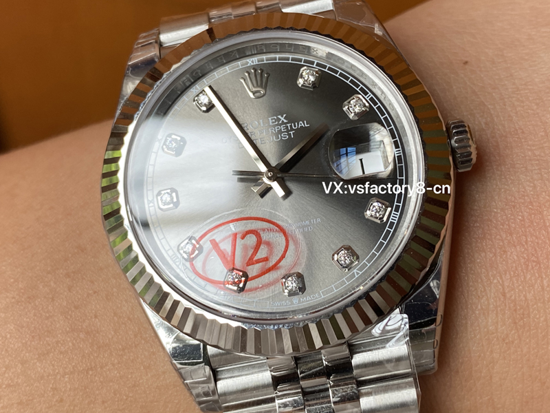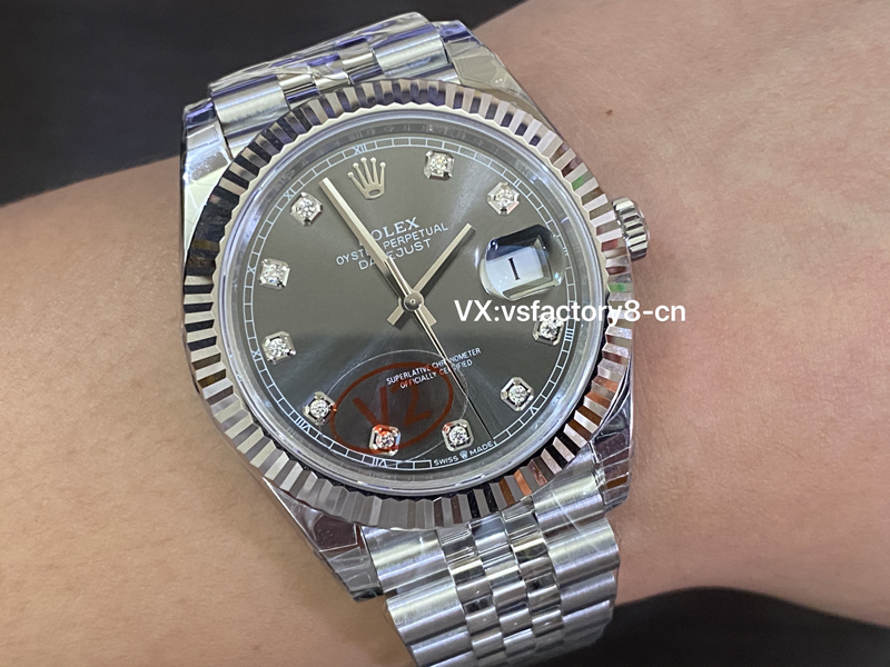 4:VS廠勞力士41mm灰鉆日志復(fù)刻表最大的亮點(diǎn)在于其表盤還原設(shè)計(jì),VS廠不懈努力的努力調(diào)校,也終于成功達(dá)到了的原版一致放射灰面還原,其無色差現(xiàn)象,灰色的表面與閃爍的鉆石時(shí)標(biāo)形成鮮明對(duì)比,提升了整體的視覺效果,表盤刻度搭載了臺(tái)灣進(jìn)口莫桑鉆,閃亮無比,盤面英文印刷細(xì)節(jié)處理的很到位,指針打磨圓潤(rùn),實(shí)心中軸,十二點(diǎn)大皇冠LOGO立體感非常強(qiáng)烈,展現(xiàn)了VS廠的超高復(fù)刻技術(shù),做到了原汁原味。