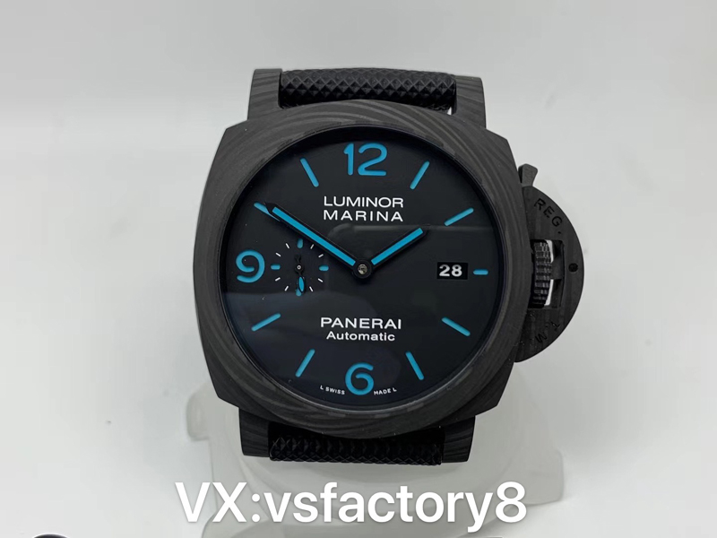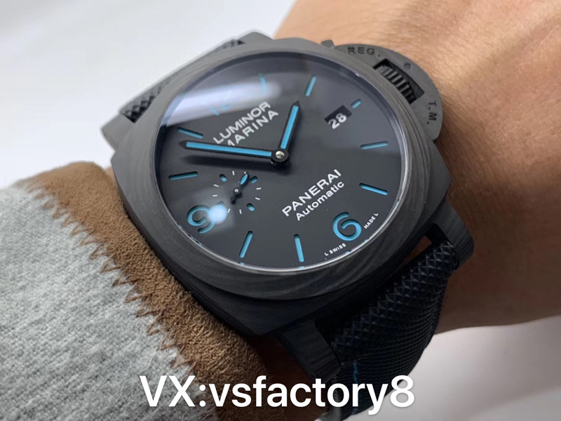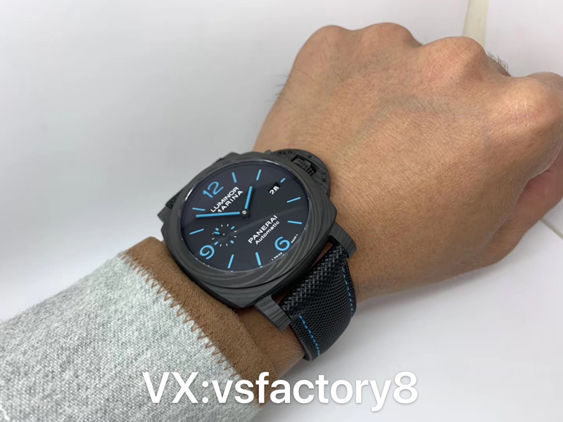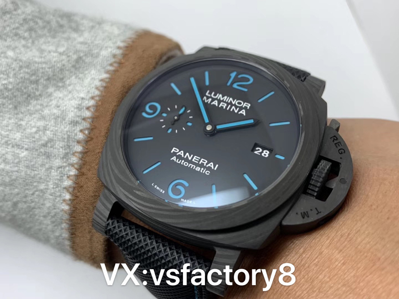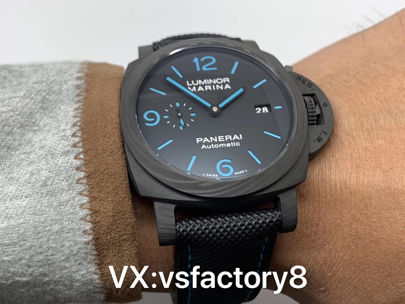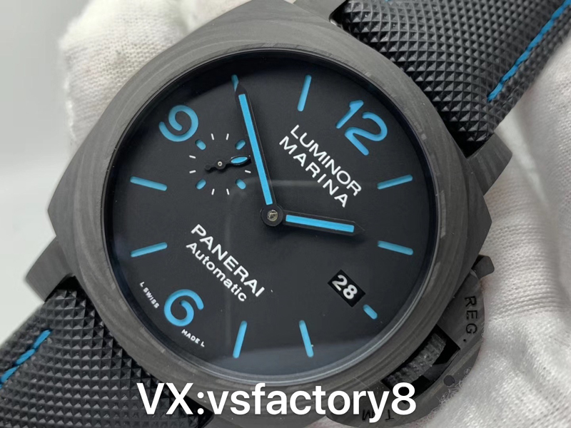 VS廠(chǎng)手表官網(wǎng)2020年新力作,沛納海PAM1661碳纖維殼,輕量化設(shè)計(jì),適合夏天佩戴,44x14.5mm,復(fù)刻P.9001自動(dòng)機(jī)械機(jī)芯,碳纖維表殼,藍(lán)寶石鏡面,夜光表盤(pán)和指針,合成防水材質(zhì)表帶,針扣,防水大于50米!