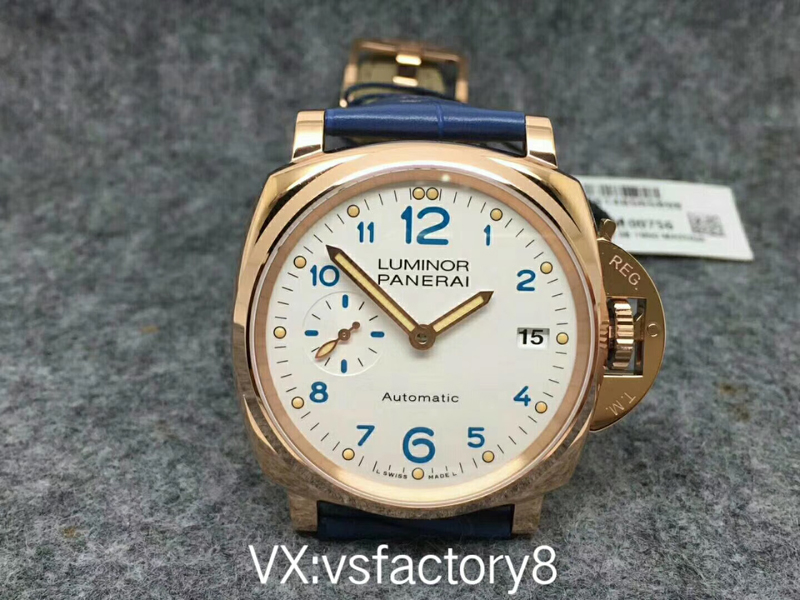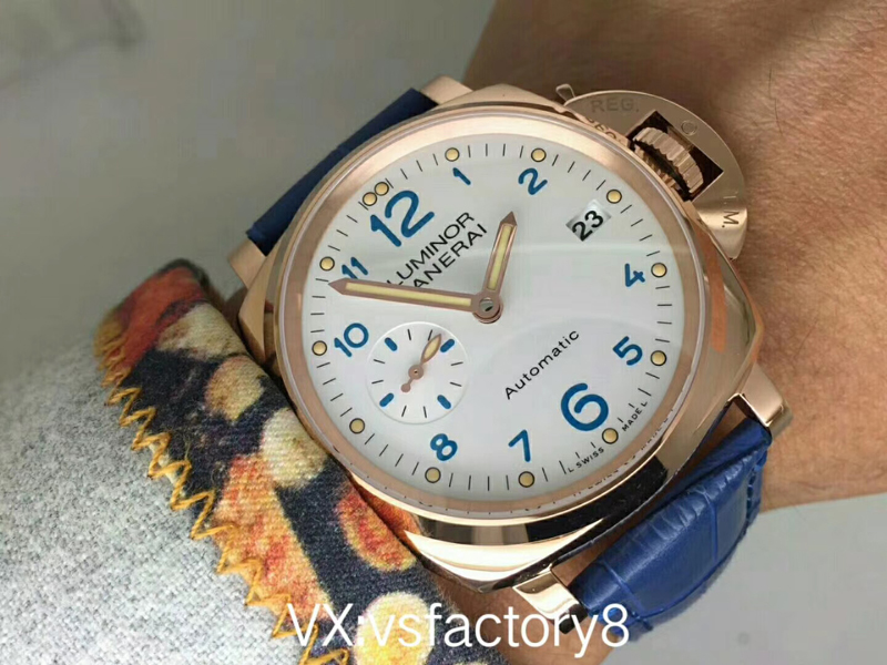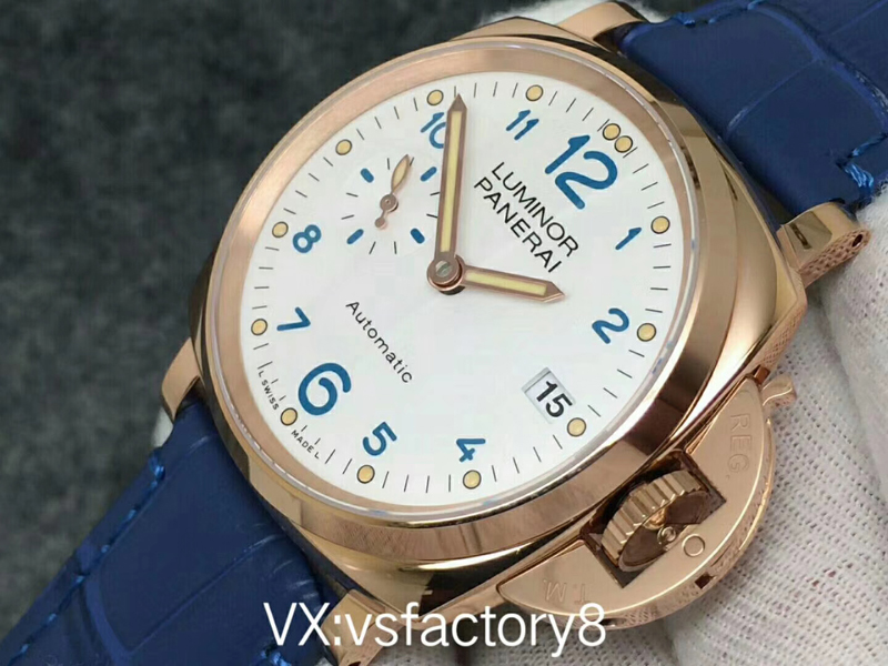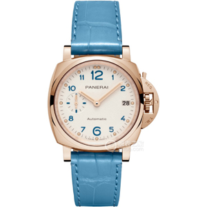 VS廠沛納海PAM756限量發(fā)售:VS廠沛納海LUMINOR DUE系列PAM00756腕表,同步正品一直38mm紅金表殼,象牙白色表盤,自動機械一體機芯,藍色牛皮表帶,一款適合亞洲手腕的紅金腕表。