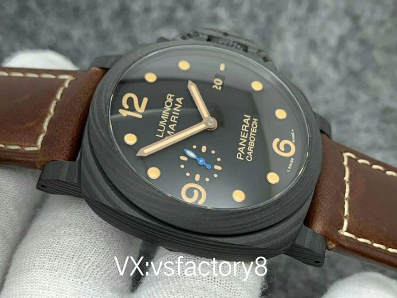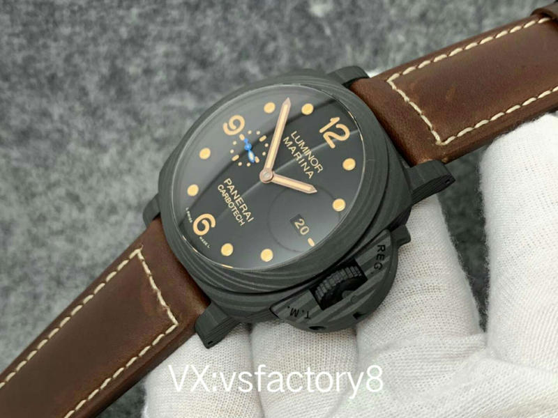 VS廠沛納海PAM661碳纖維殼,全新表殼工藝,7層碳纖維更為致密,44mm 最新版P.9010自動(dòng)機(jī)械機(jī)芯,碳纖維表殼,藍(lán)寶石鏡面,夜光表盤和指針,牛皮表帶,針扣,防水大于100米!