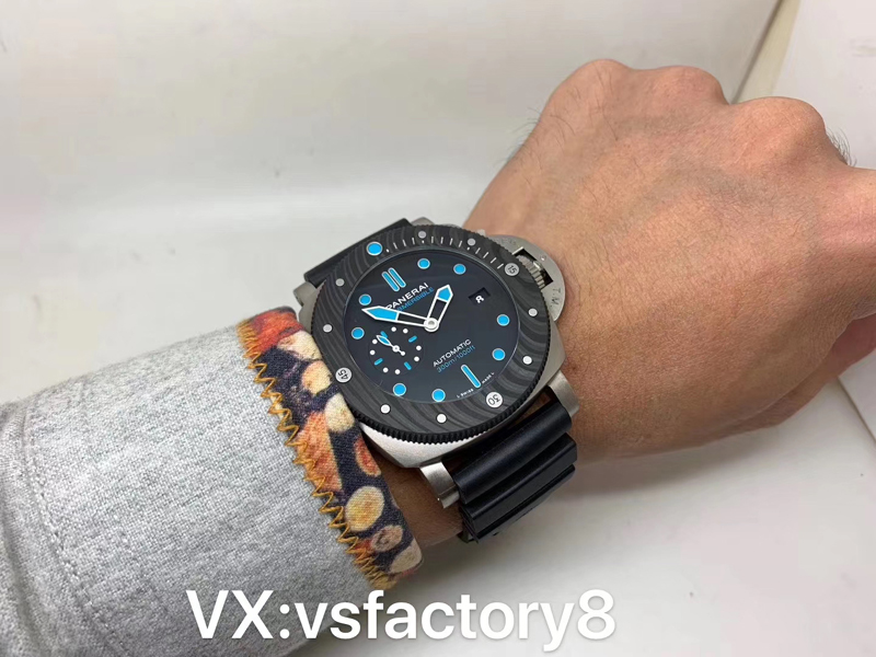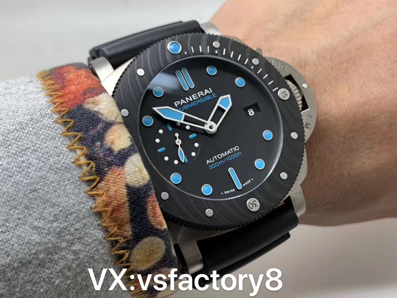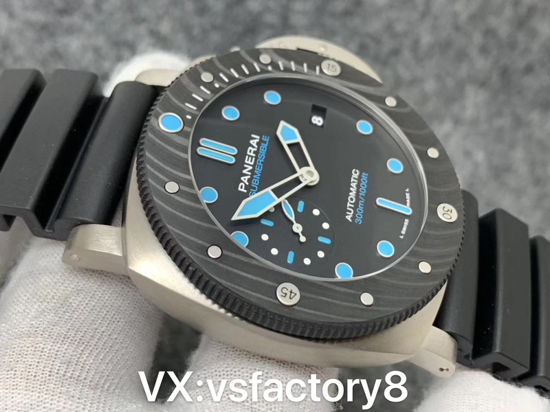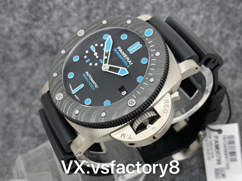 VS廠官網(wǎng)新品:VS廠沛納海PAM00799 ,47mm ,CARBOTECH碳纖維旋轉(zhuǎn)表圈,黑色表盤,藍寶石玻璃魚眼,自動上鏈機械機芯,橡膠表帶,鍛造碳圈有著它獨特的紋理個性,組合堅固耐用的鈦金屬表殼,專業(yè)獨特的美學(xué)風格,更好地將堅固和輕盈集于一身,更輕卻更硬。