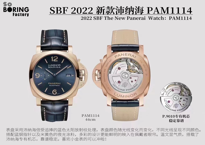 2022年 (VS工廠)旗下SBF廠新款沛納海PAM1114表盤采用沛納海倍灰色太陽放射紋處理,表盤顏色隨光線變化而變化,搭配藍(lán)鋼指針以及米黃色的夜光涂料,多彩的設(shè)計(jì)更能鮮明的映入在佩戴者眼簾,溫文顯氣質(zhì),VS廠沛納海專有機(jī)芯,靠譜穩(wěn)定。喜歡小金表的可以沖啦!