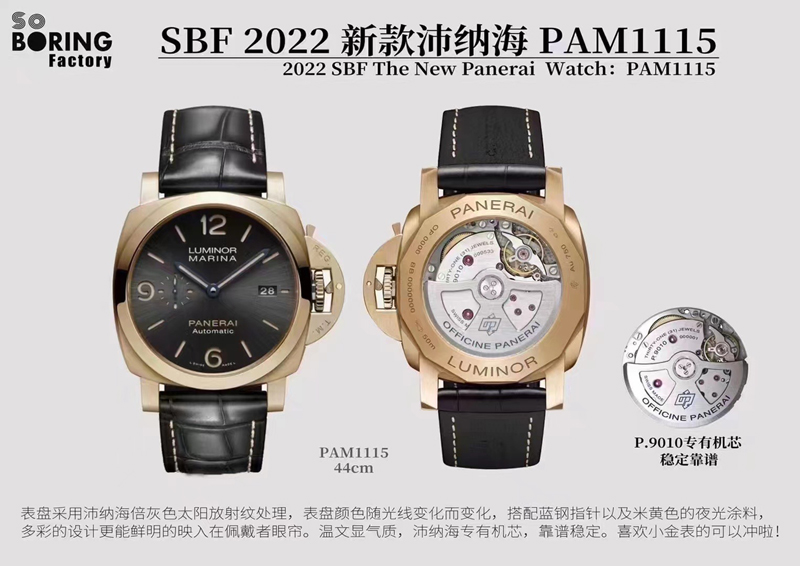 2022年 (VS廠官網(wǎng))旗下SBF廠新款沛納海PAM1115表盤采用沛納海倍灰色太陽放射紋處理,表盤顏色隨光線變化而變化,搭配藍鋼指針以及米黃色的夜光涂料,多彩的設計更能鮮明的映入在佩戴者眼簾。溫文顯氣質,VS廠沛納海專有機芯,靠譜穩(wěn)定。喜歡小金表的可以沖啦!