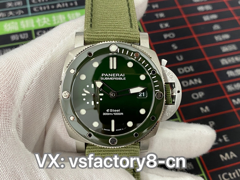 2022年(VS工廠)旗下SBF廠新款:VS廠復(fù)刻表沛納海PAM1287實(shí)拍圖,首款采用拋光圈口,表圈透出翡翠般的光澤。翡翠綠拋光漸變表盤,詮釋時(shí)間的層次感。