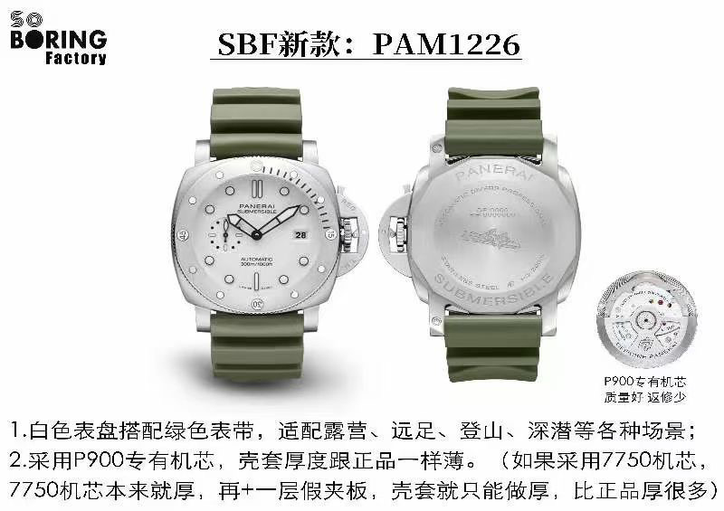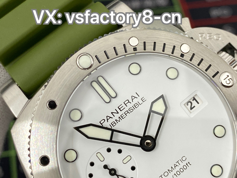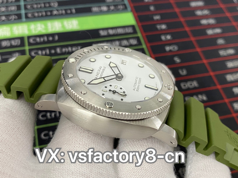 2022年(VS廠手表官網(wǎng))旗下 SBF廠新款:VS廠沛納海復(fù)刻表PAM1226 44毫米,白色表盤搭配綠色表帶,沿襲潛行系列標志性設(shè)計及性能,適配露營、遠足、登山、深潛等各種場景;