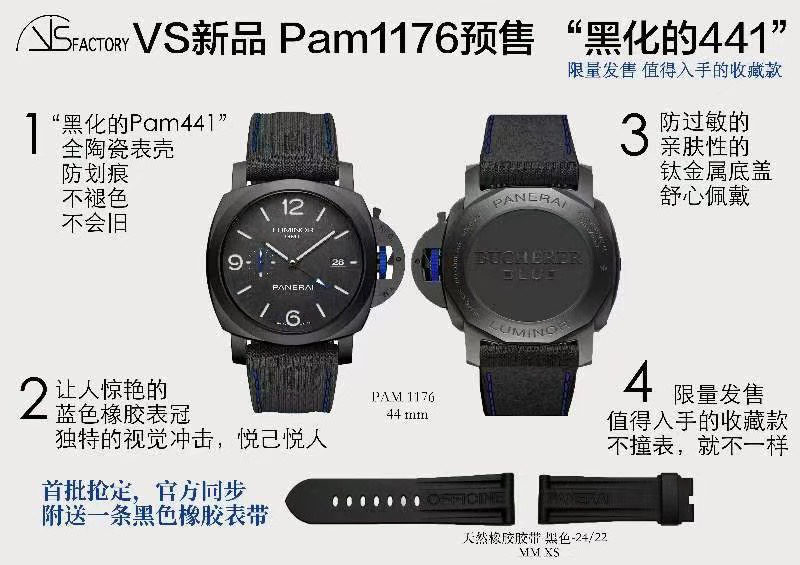 VS廠沛納海PAM1176復(fù)刻版黑化的441