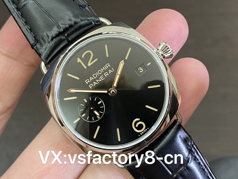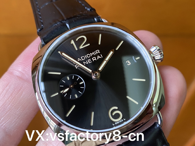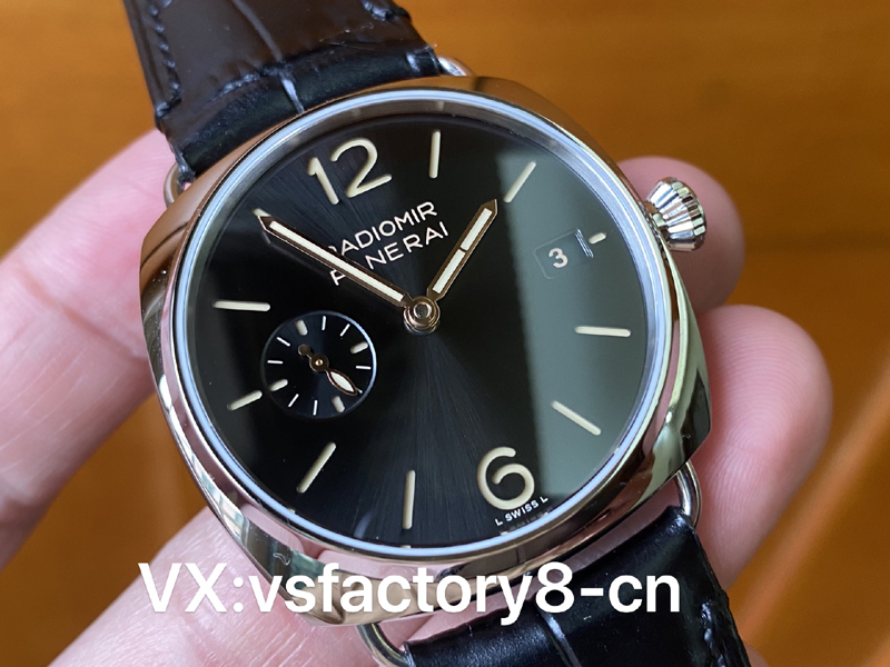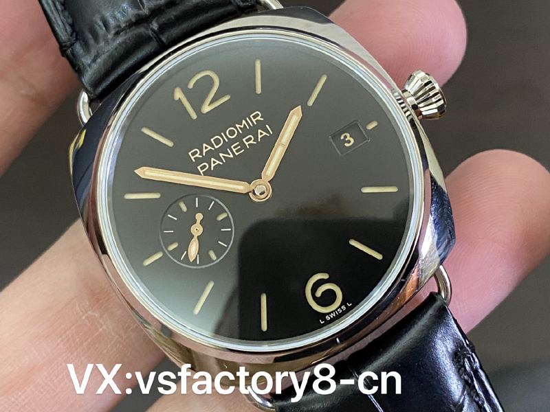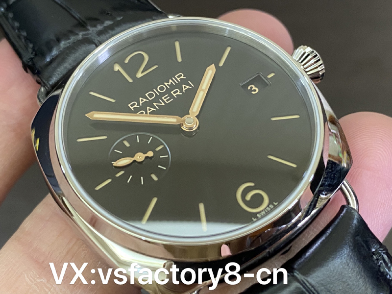 VS廠復(fù)刻表沛納海1294還原度比較高,表盤采用經(jīng)典款黑色字面,同樣采用沛納海最經(jīng)典的三明治夾層結(jié)構(gòu)。