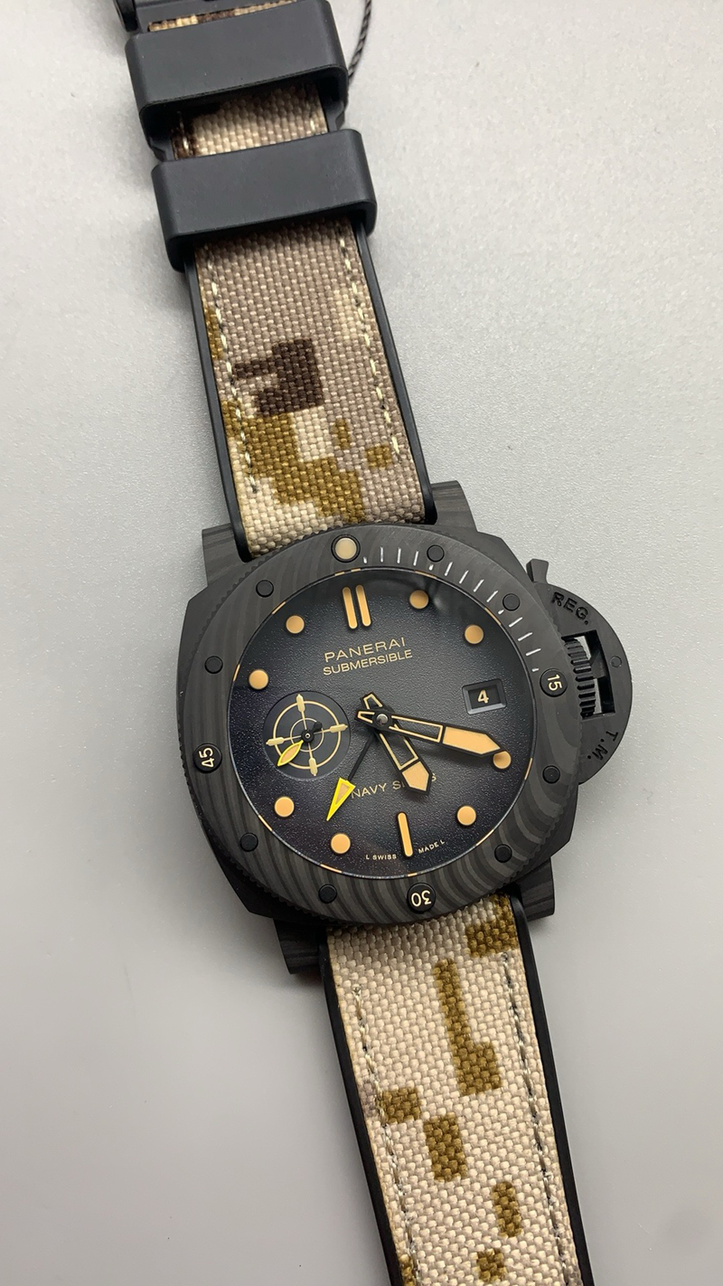VS廠沛納海pam1513同步正品44m表殼,VS工廠獨家研製的Carbotech?碳纖維材質(zhì),表圈和表殼材質(zhì)相同,不過Carbotech?的特點在于它的紋路自成一格,且不會找到一模一樣的樣式。