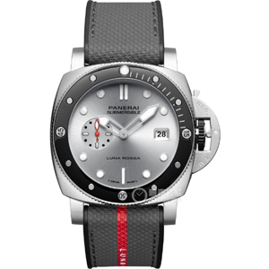 表盤飾有“Luna Rossa”字樣,表圈的夜光圓點、指針與時標均涂覆Super-LumiNova?夜光涂層,最引人矚目的工藝特點則是小秒盤上的環(huán)形雕紋。