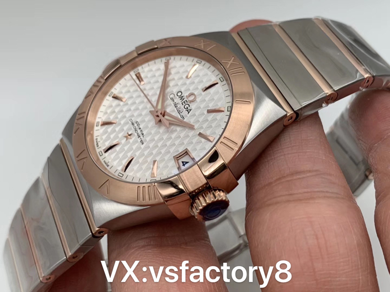 VS廠官網(wǎng)2019年新品歐米茄間玫格紋條釘白面星座才是歐米茄的精髓。