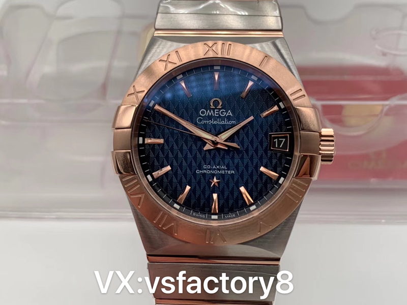 VS廠官網(wǎng)2019年新品歐米茄間玫條釘格紋藍面星座才是歐米茄的精髓。