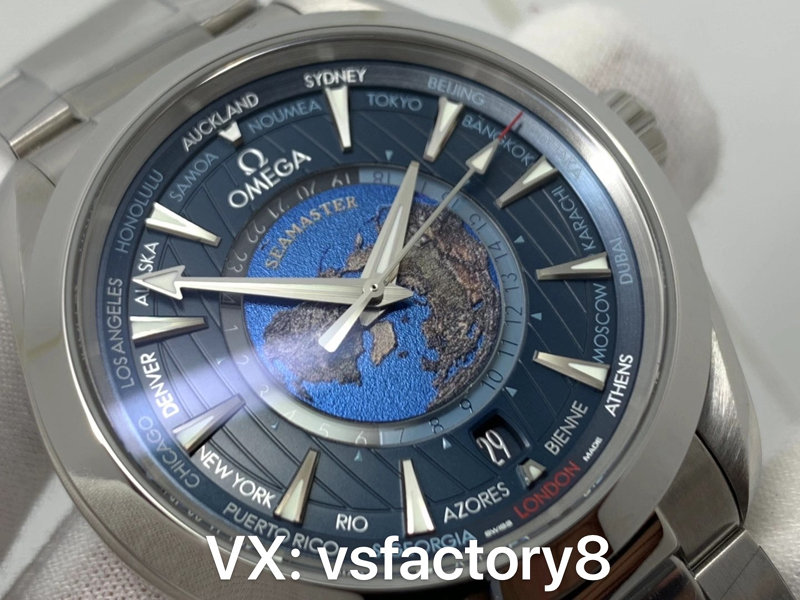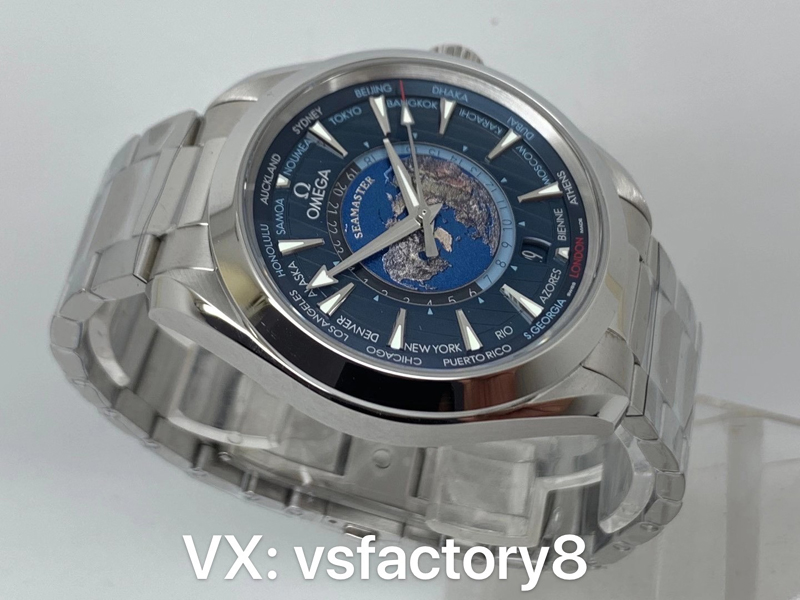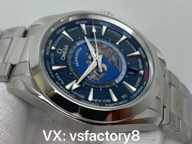 VS廠(chǎng)歐米茄藍(lán)面世界時(shí)海馬150米43MM Aqua Terra 世界時(shí)復(fù)刻腕表。