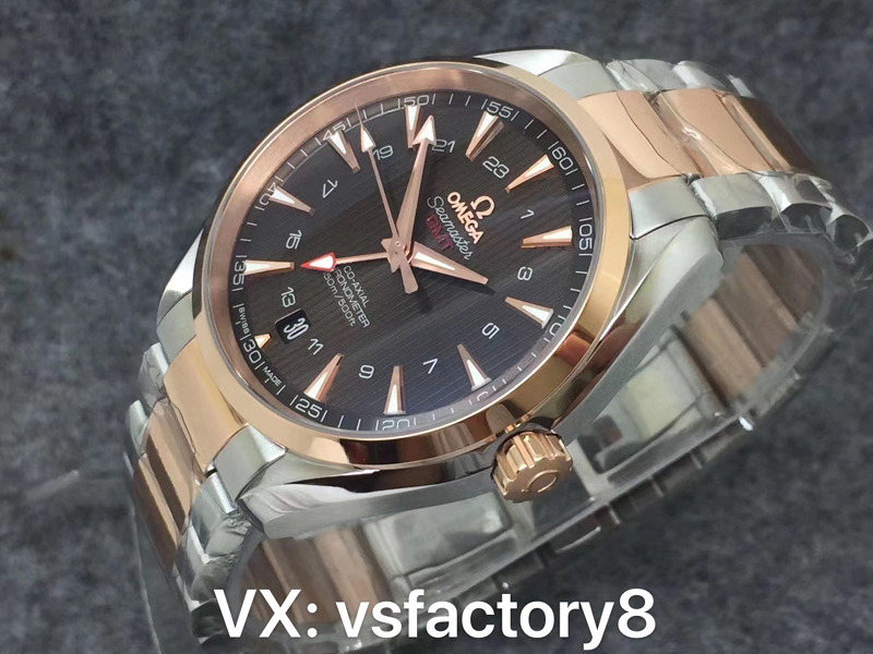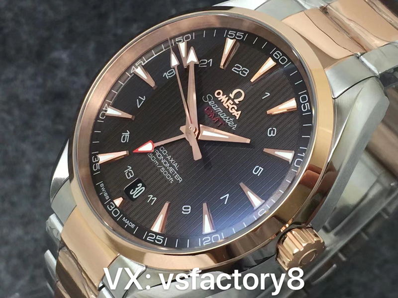 VS廠手表官網(wǎng)全新歐米茄間玫瑰金海馬150米GMT復(fù)刻表, 搭載VS工廠全新1:1一體機(jī)芯,尺寸43mm全新上市!