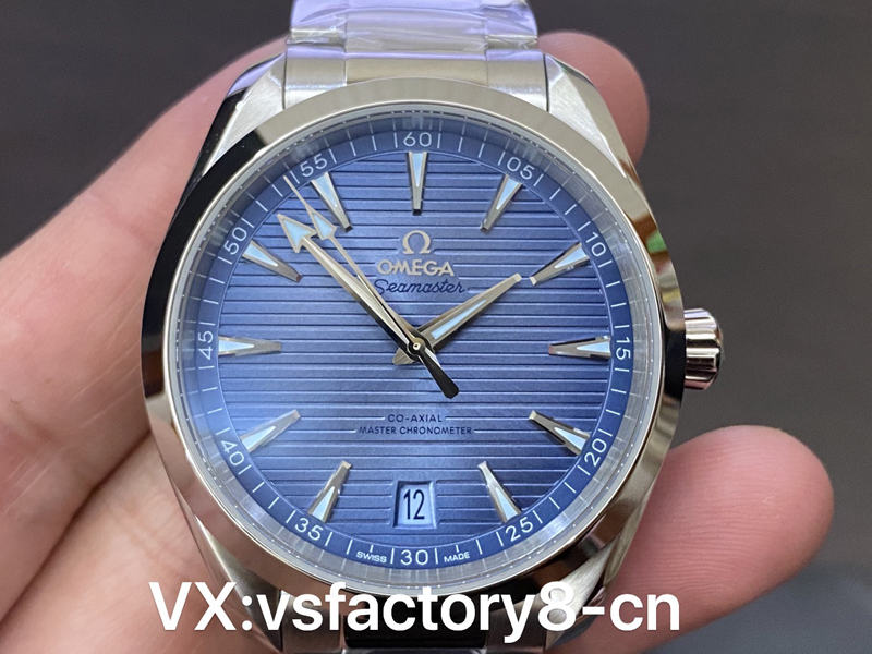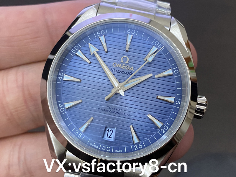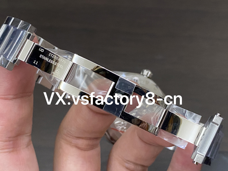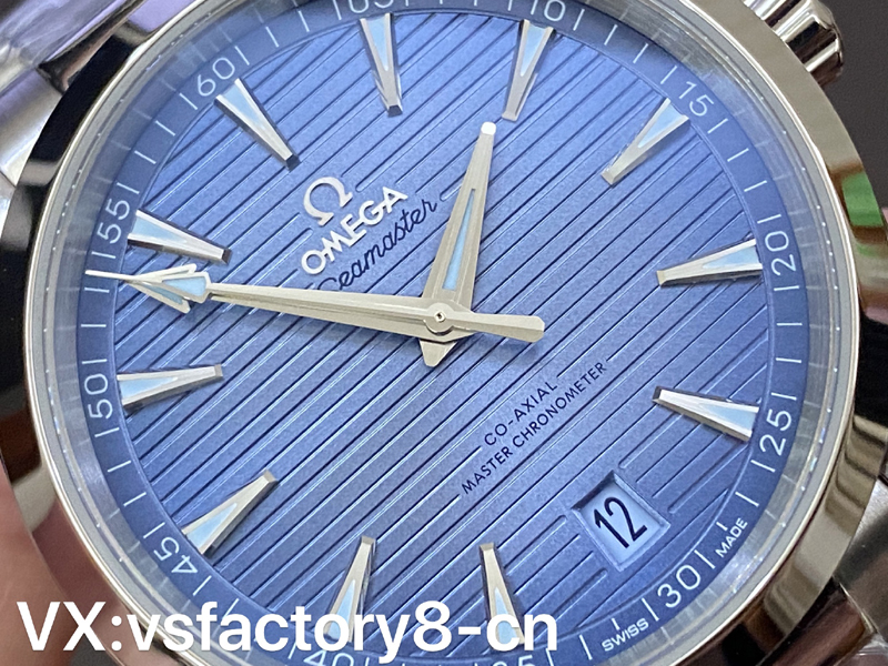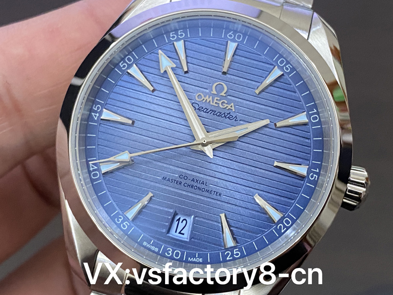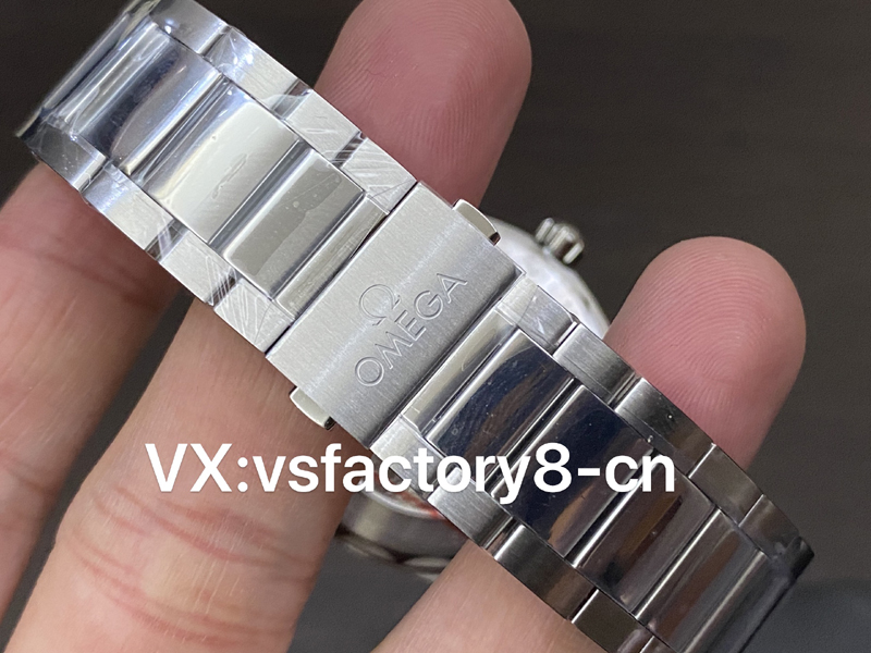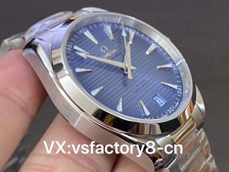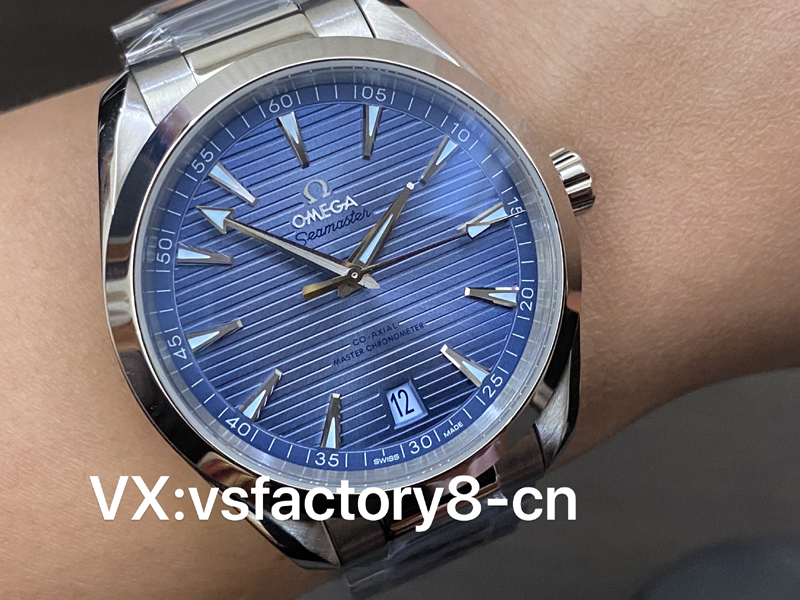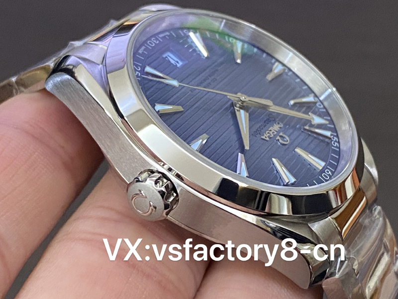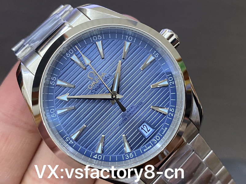 這款VS工廠歐米茄海馬150米AquaTerra的表殼為41mm,以經(jīng)拋光和拉絲處理的精鋼材質(zhì)打造,搭配同材質(zhì)精鋼表鏈。