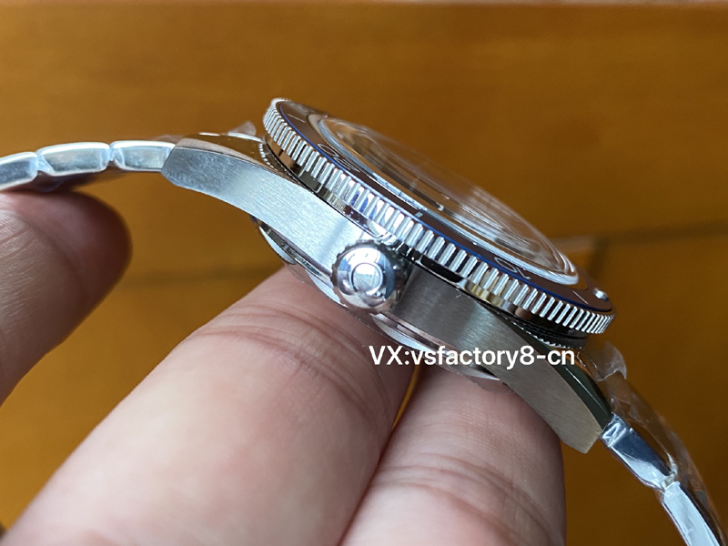 VS廠冰藍面幽靈黨的指針也是按照正品一樣“棒棒糖”型中央秒針。鍍銠指針、鏤空的小時刻度和數(shù)字時標均覆以獨特的淺藍色Super-LumiNova夜光涂層。