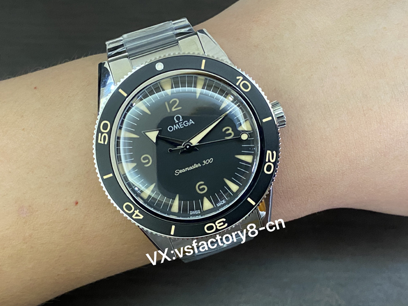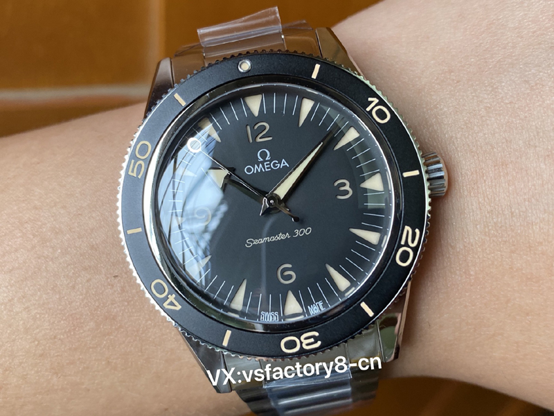 2024年VS廠官網(wǎng)全新推出新款歐米茄海馬300米復古幽靈黨復刻表,這款VS廠海馬300米復古幽靈黨同步正品41毫米的精鋼腕表配備黑色表盤,黑色鋁質(zhì)表圈經(jīng)草酸陽極氧化工藝處理,飾有復古風格Super-LumiNova潛水刻度。