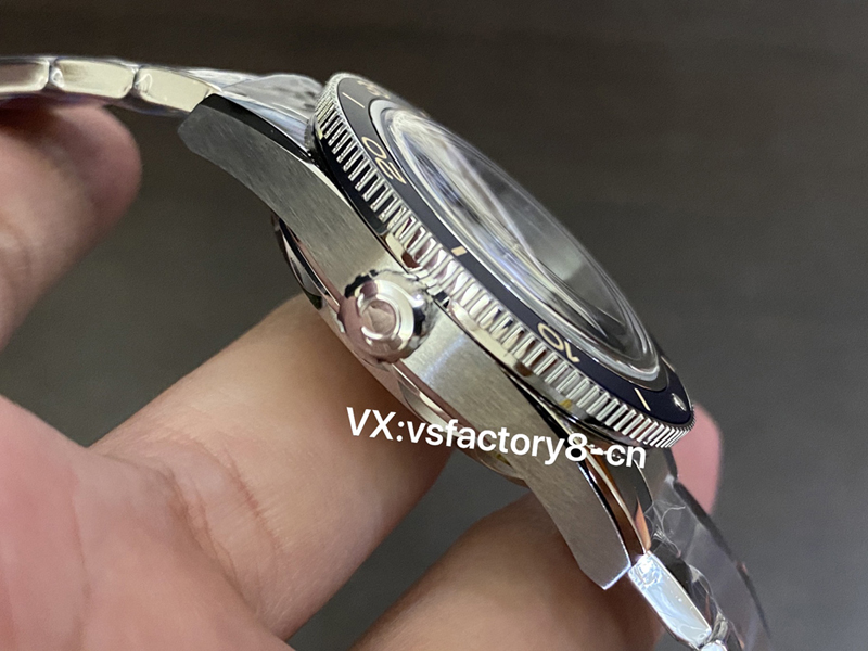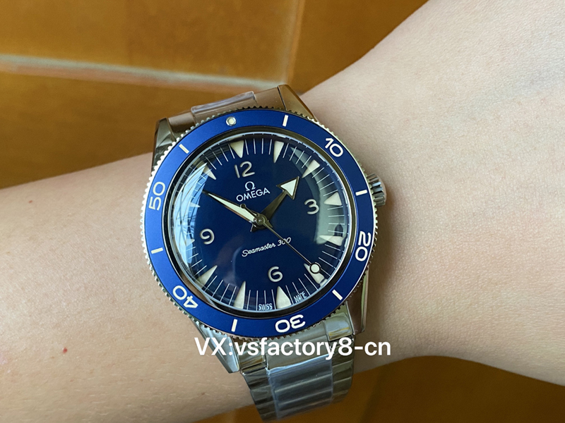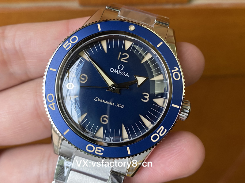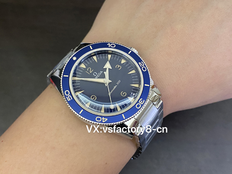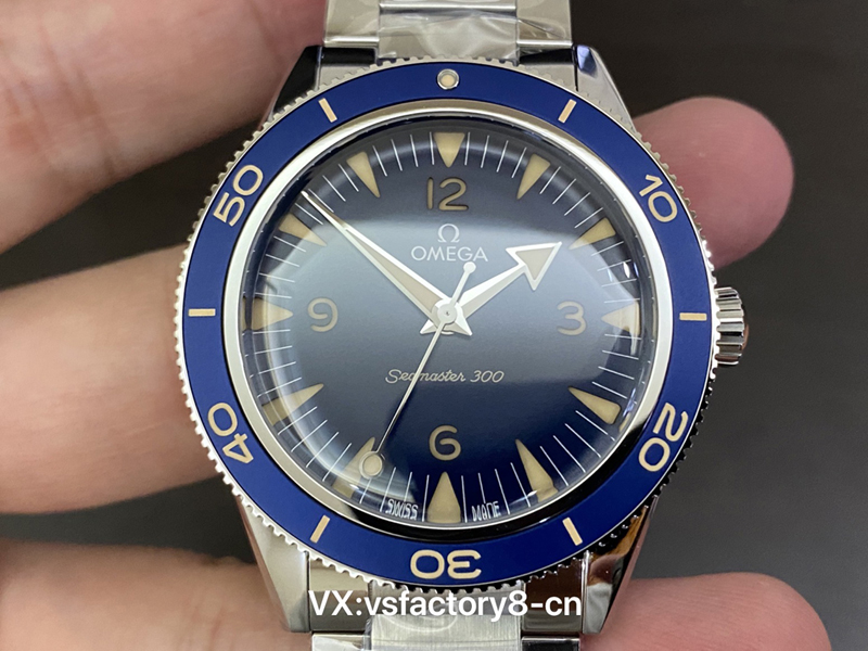 VS工廠歐米茄新一代海馬300復(fù)刻表41毫米的表殼為精鋼材質(zhì)打造,配備藍(lán)色“三明治”表盤,即雙層重疊結(jié)構(gòu)的盤面,底層覆有的Super-LumiNova夜光涂層,上層盤面則鏤刻出小時(shí)刻度和數(shù)字時(shí)標(biāo),這也是VS廠復(fù)刻表最顯著的升級所在。