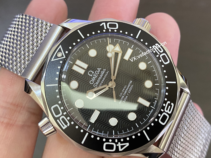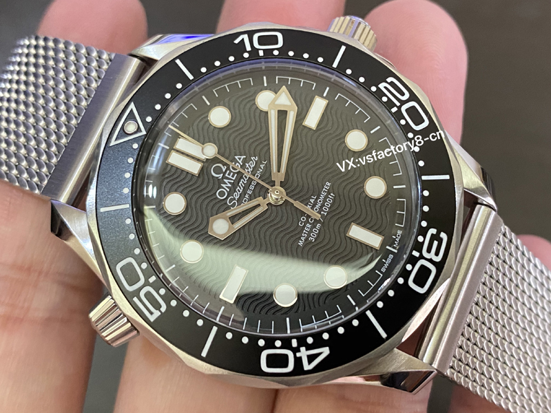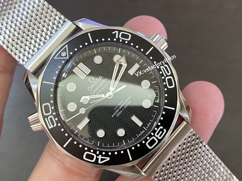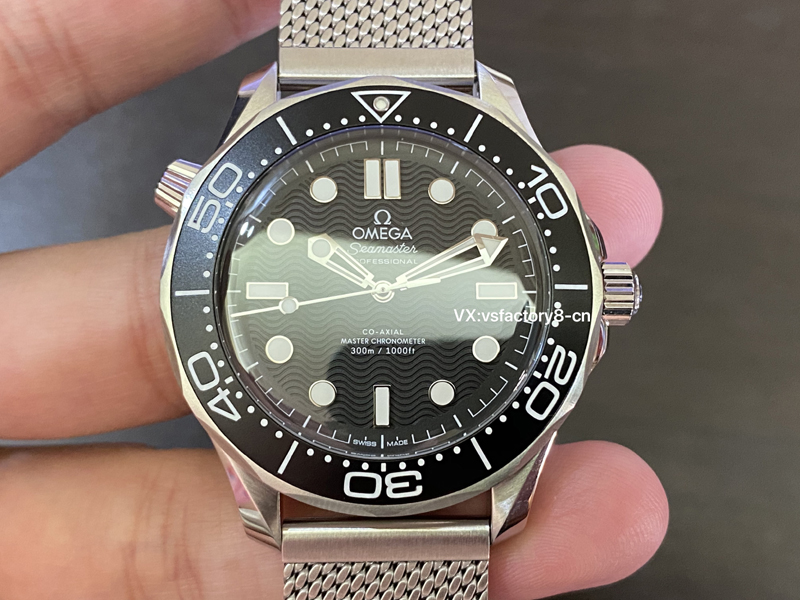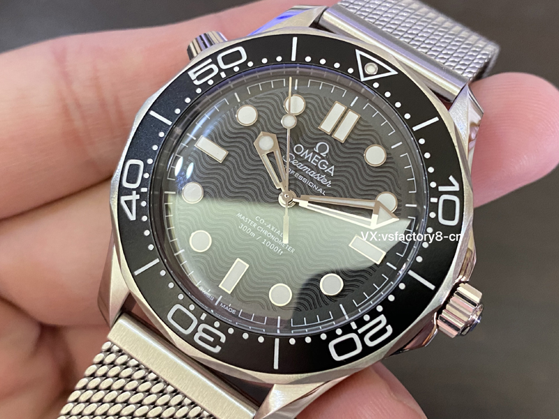 VS廠歐米茄黑面海馬300米復(fù)古無暇表殼全面采納了316L精鋼材質(zhì),拉絲工藝打磨處理!