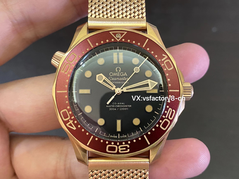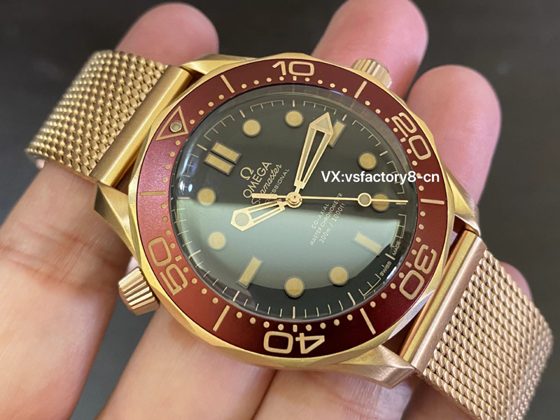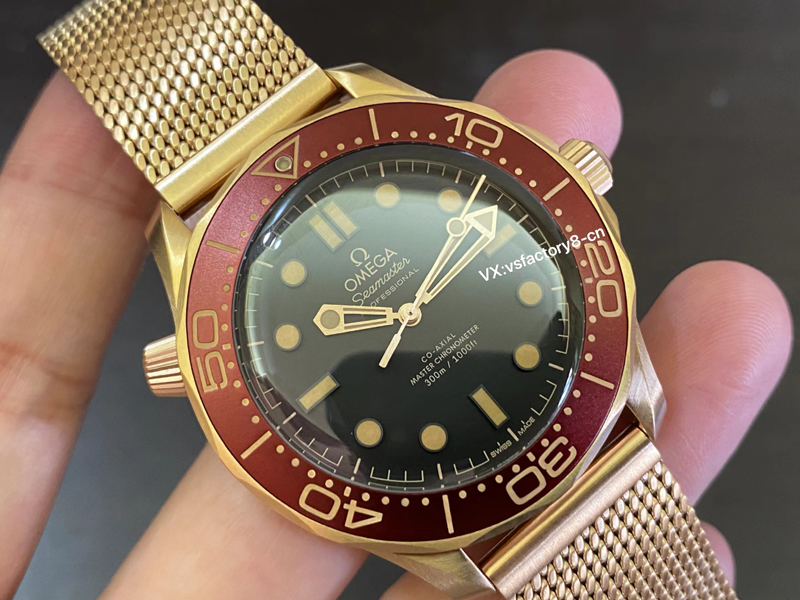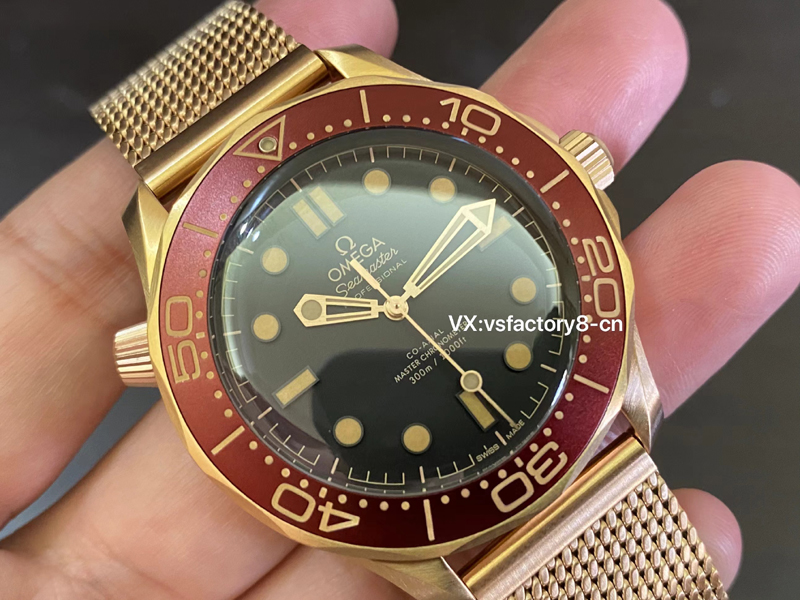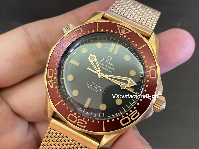 VS廠2025年四月份新品歐米茄青銅金與勃根地紅的表圈絕美融合復古無暇海馬300米復刻腕表出貨!