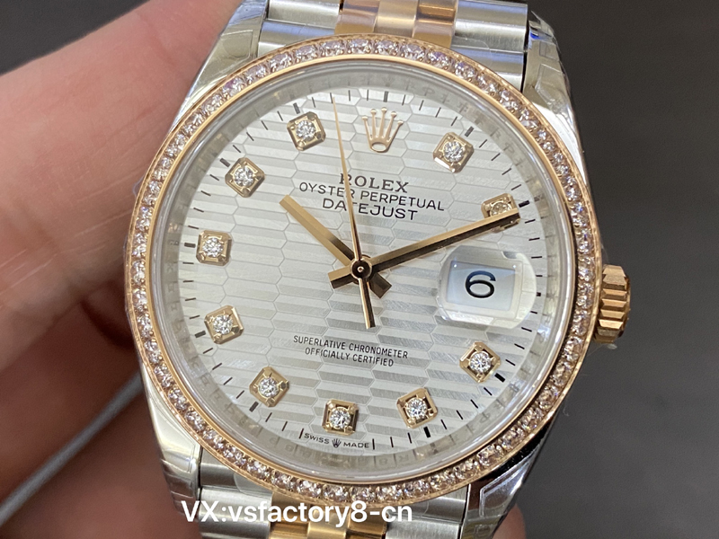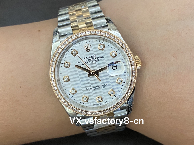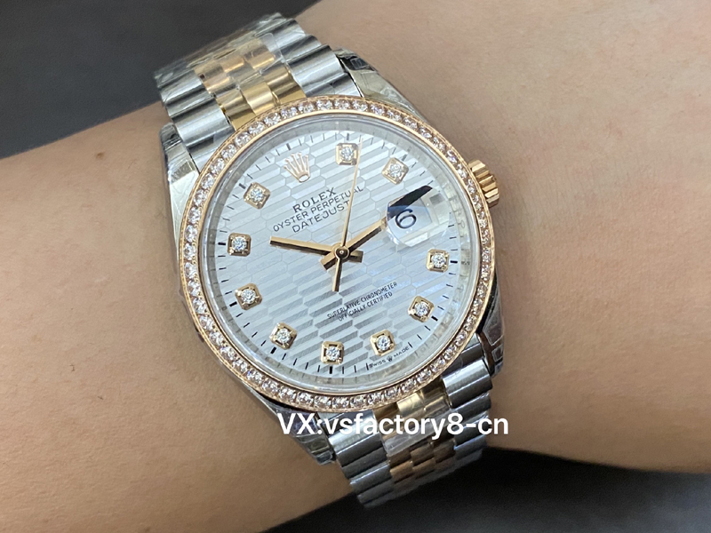 2024年VS廠四月份全新推出新款勞力士日志型系列m126281rbr-0027,也是VS廠首次推出鉆圈鉆面勞力士銀水紋日志丹東3235機(jī),對于表圈VS工廠采納的是臺灣莫桑鉆,還原了正品一致。