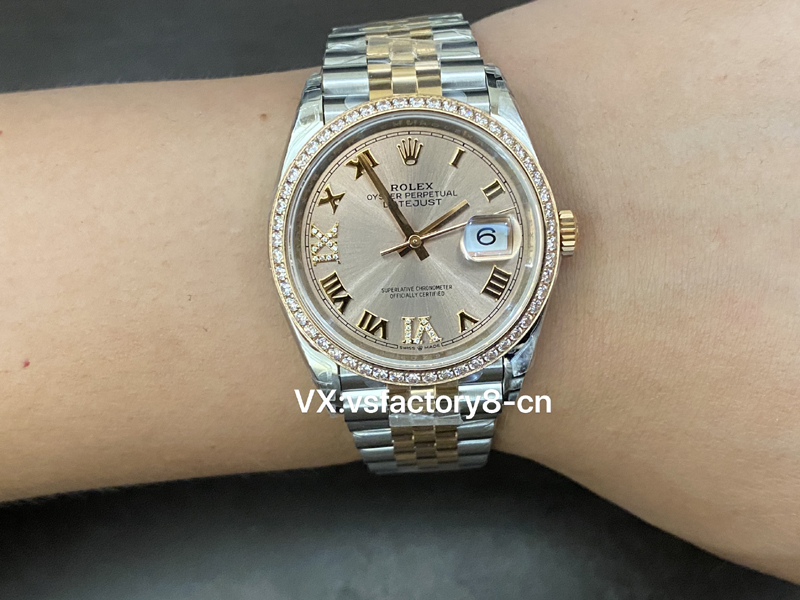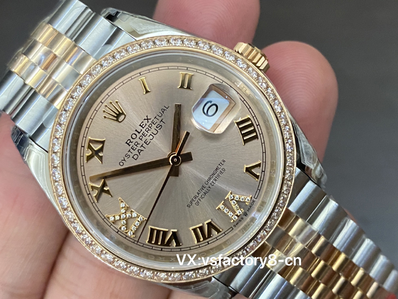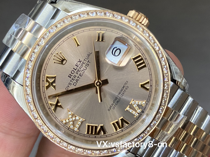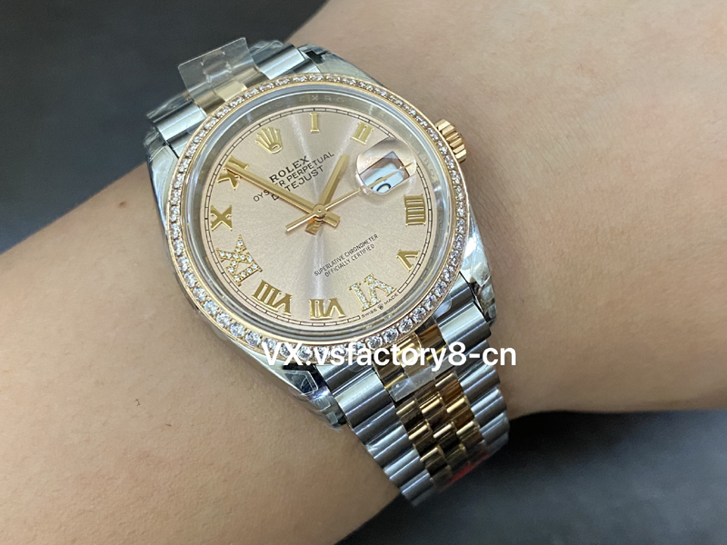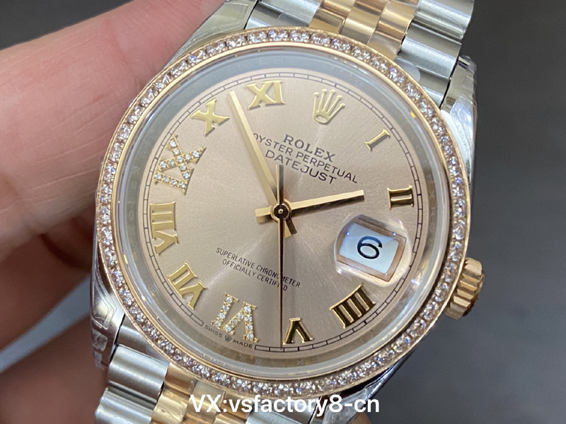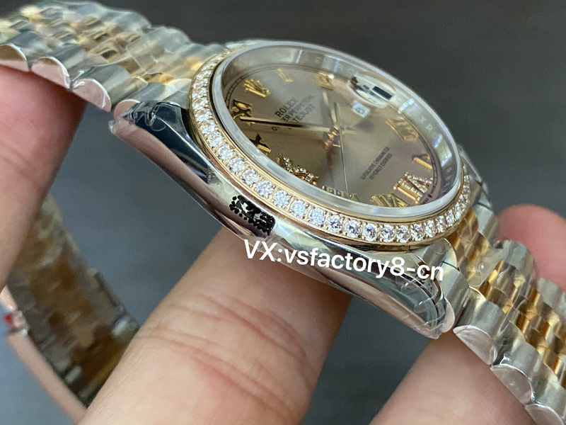 VS廠勞力士日志鉆圈粉面全面按照正品同步一致,并且實(shí)施了六點(diǎn)位置和九點(diǎn)位置都跟正品一致采納鉆石,當(dāng)然VS工廠用的是臺(tái)灣莫桑鉆,并一比一羅馬數(shù)字,不再一眼假和露破綻!