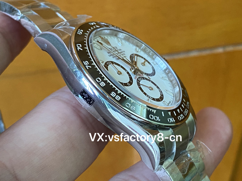 等等,這次126500真品我們看到的是暖白色和冷白的中間色,VS廠迪通拿新熊貓迪4131機(jī)這次顏色也做的非常棒。