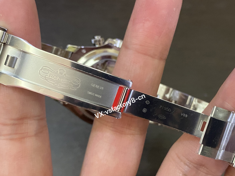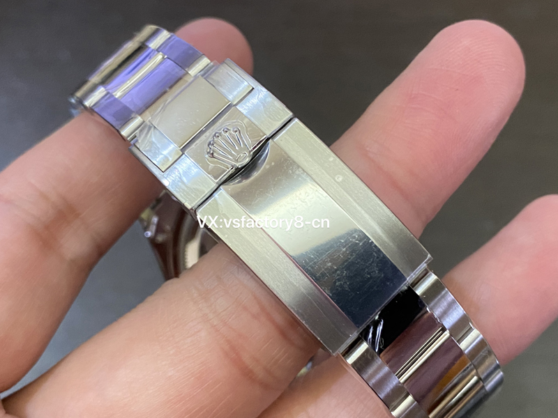 表帶依舊使用分體式頭粒,表盤刻度為最高等級條釘普刻,頭粒凸出表殼,并且頭粒邊緣做拋光處理。